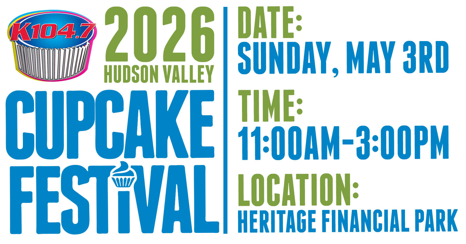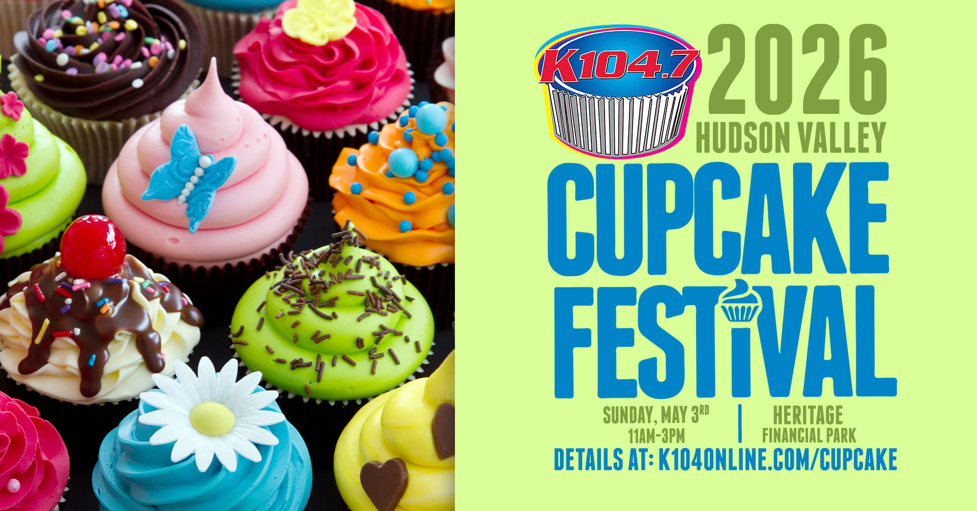 The SWEETEST event in the Hudson Valley is BACK! Join us for K104's Annual Cupcake Festival on Sunday, May 3rd at Heritage Financial Park, Home of the Hudson Valley Renegades! It's a family-fun-filled day with thousands of delicious cupcakes and sweet treats, along with some of the Hudson Valley's best vendors! Gifts, pet treats, home services, pickles, local non-profits and of course... CUPCAKES (but don't forget about the donuts and cookies, too!)