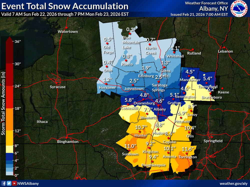 The Hudson Valley won't be spared with 6-10 inches possible in Poughkeepsie with totals increasing further south into Westchester, Rockland and Orange Counties.